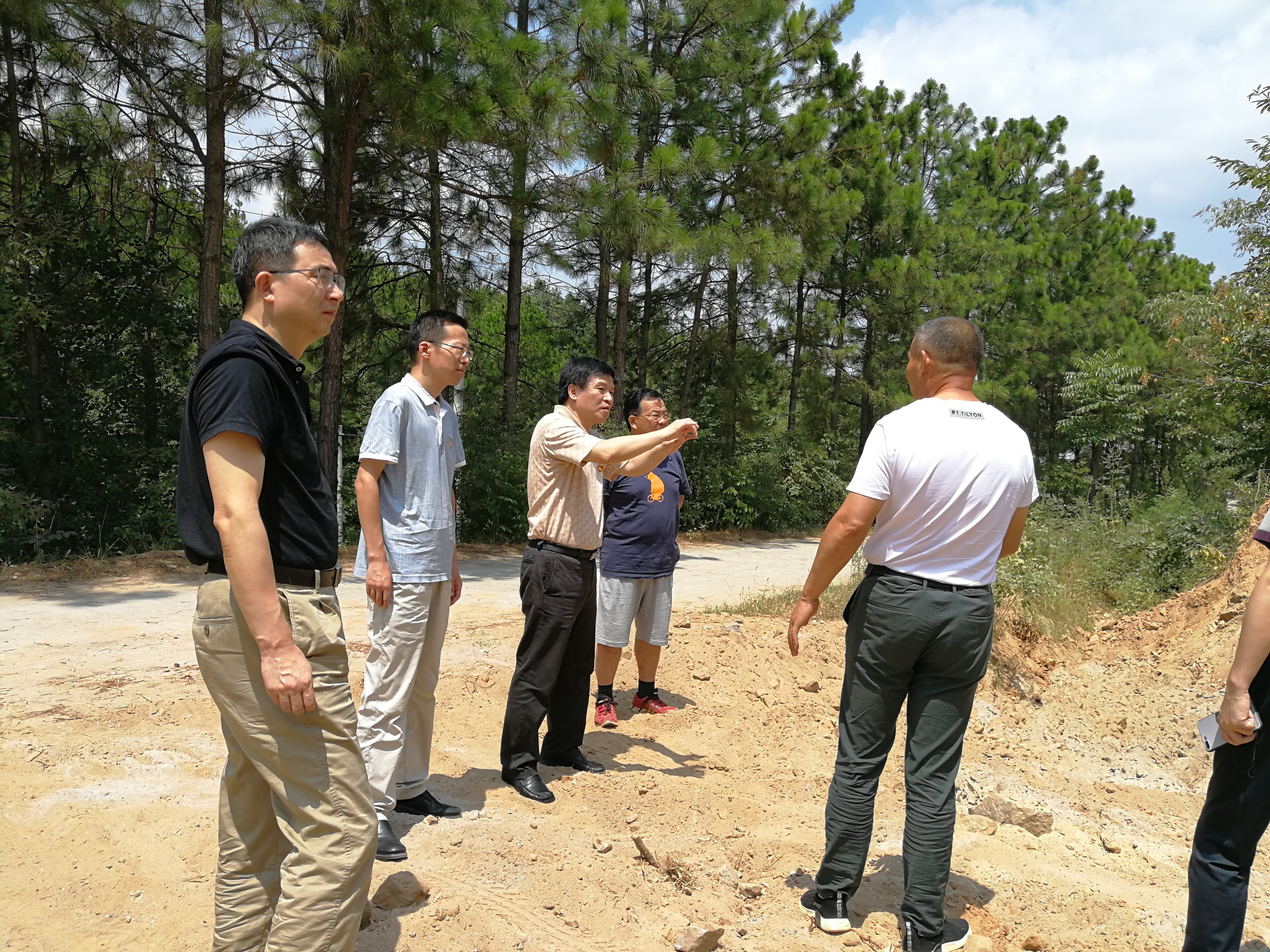 参加调研的同志们踏勘扶贫产业建设现场讨论建设方案