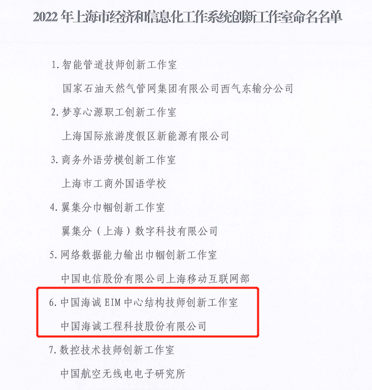 7月12日,上海市经济和信息化工作系统工会工作委员会正式发布了《关于命名2022年海市经济和信息化工作系统创新工作室的决定》,市经信系统工会授予“mansion88主页EIM数创中心结构技师创新工作室”。