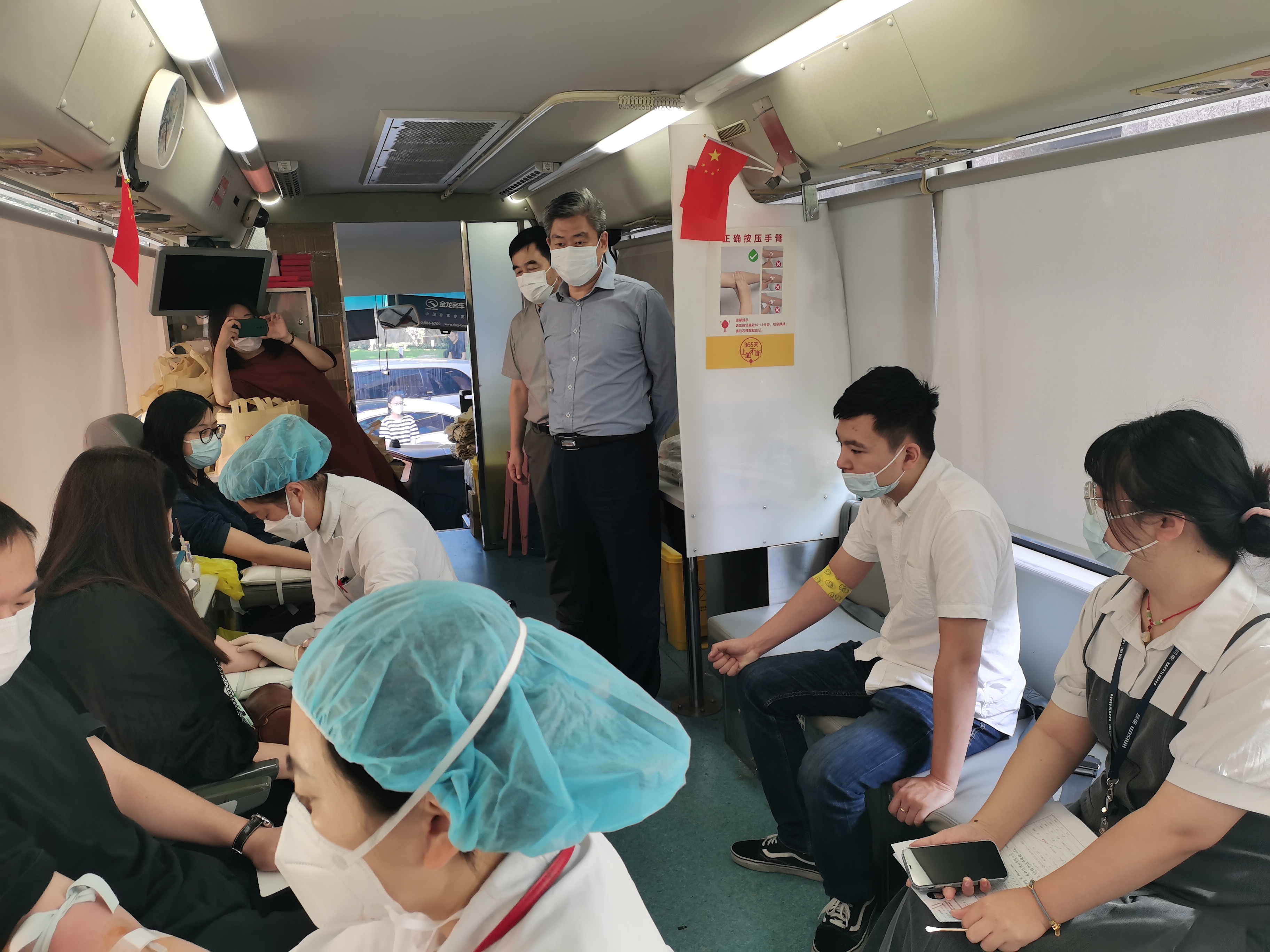 采血期间,公司党委书记、董事长赵国昂和党委副书记、纪委书记李义民也来到采血车上,对献血员工进行慰问,并为献血后的员工递上慰问品,转达公司的关心和关怀。