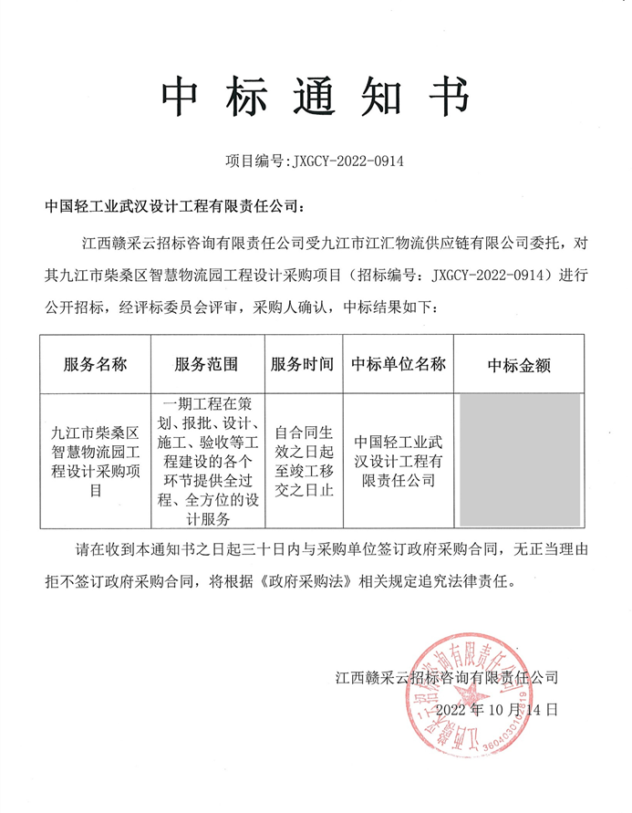 近日,mansion88主页所属中国轻工业武汉设计工程有限责任公司凭借综合实力在众多竞争者中脱颖而出,成功拿到“九江市柴桑区智慧物流园工程设计”项目中标通知书。该项目分仓储用地和商业用地两个地块,其中仓储地块总建筑面积为73563.35平方米;商业地块总建筑面积为77748.40平方米。该项目定位为智慧物流园区,未来将打造为区域的物流园企业总部中心。