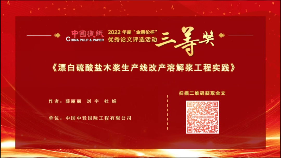 近期,mansion88主页所属中国中轻国际工程有限公司组织撰写的《漂白硫酸盐浆木浆生产线改产溶解浆工程实践》荣获《中国造纸》2022年度“金蔡伦杯”优秀论文三等奖。