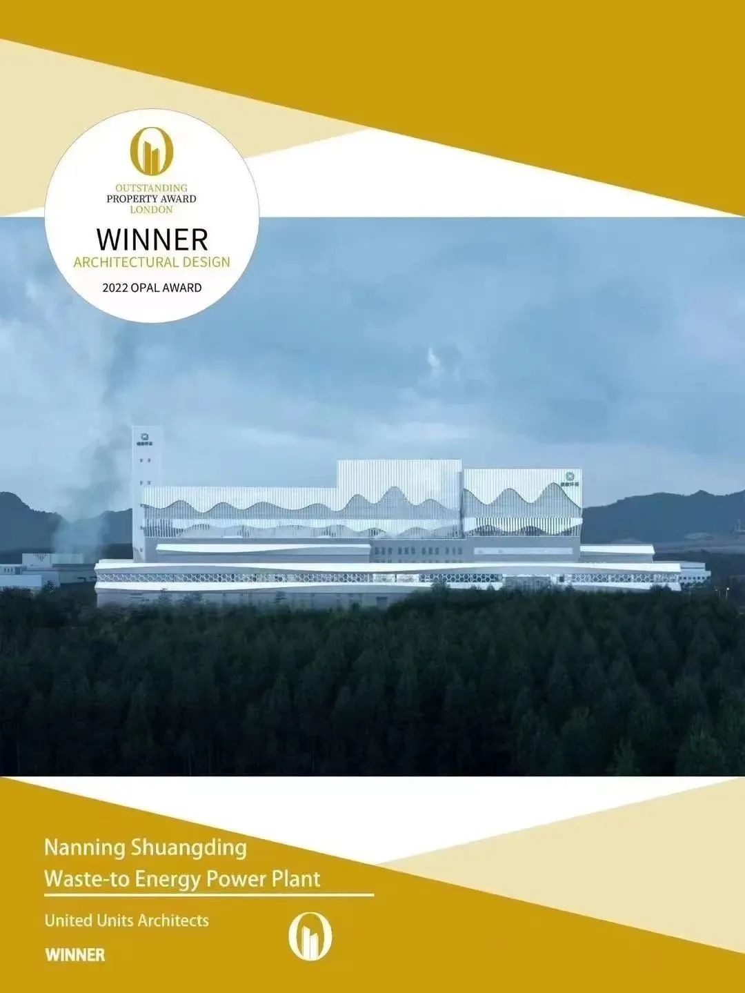 全过程工程咨询项目--南宁双定生活垃圾焚烧发电厂项目斩获“2022年度伦敦杰出地产建筑设计大奖”;