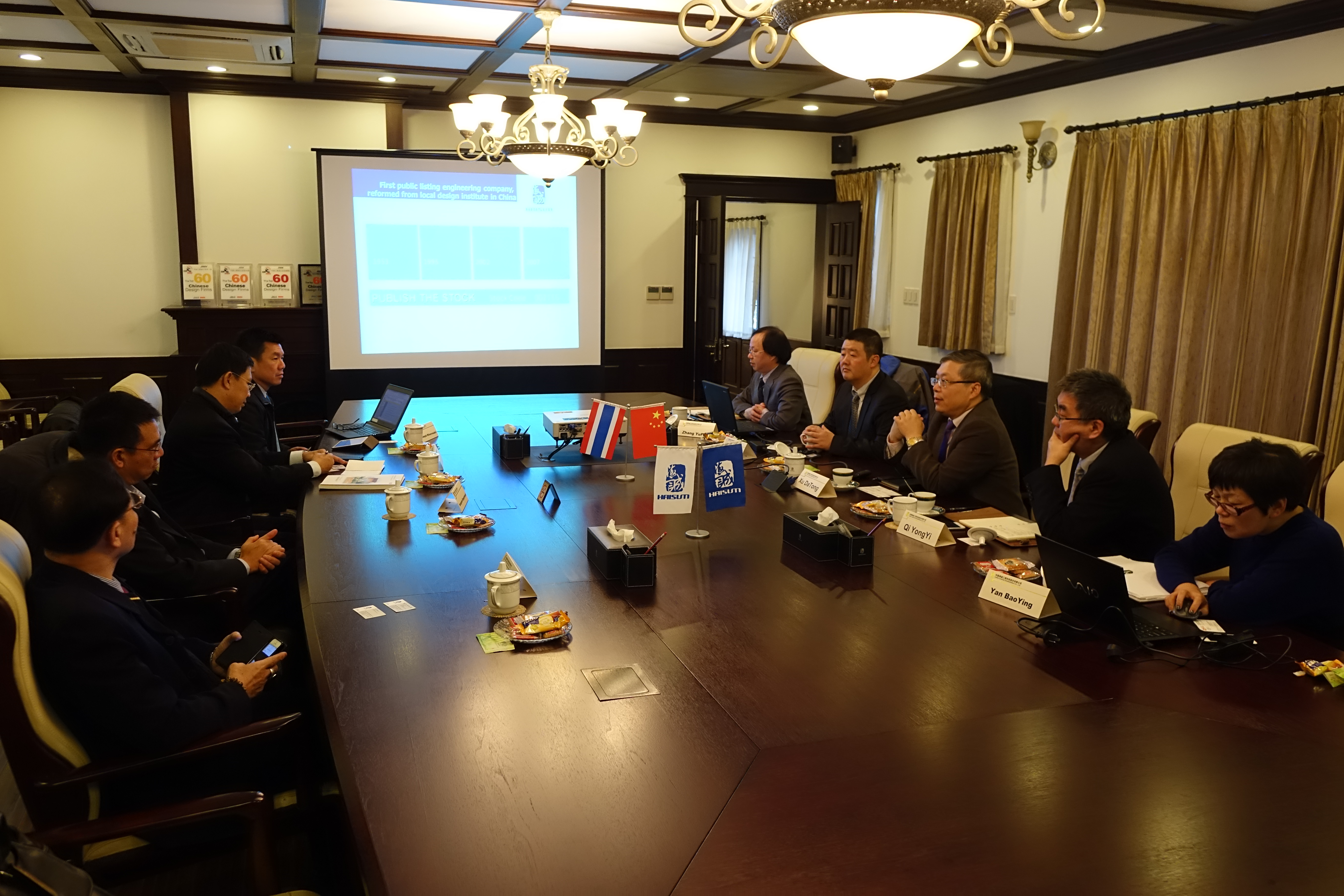 月30日,海诚股份总裁徐大同、副总裁戚永宜接待了泰国SCG集团总裁Roongrote Rangsiyopash等一行,陪同接待的还有第三设计/工程部的相关人员。
