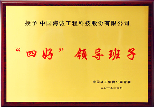日前,中轻集团党委根据2012-2014年直属企业领导班子综合考核评价结果,对 “2012-2014年度‘四好’领导班子创建活动先进集体”进行了表彰。海诚股份成为获此荣誉的两家直属企业之一。