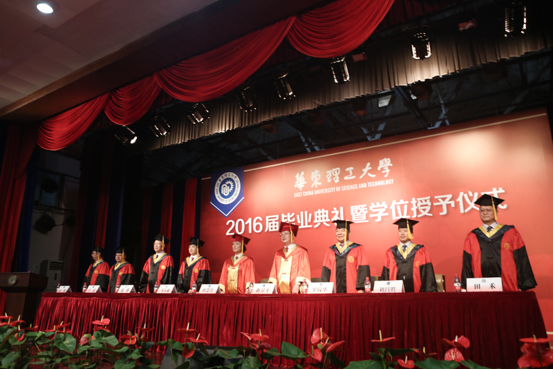 毕业典礼由校党委副书记宋来主持,华东理工大学党委书记杜慧芳,校长曲景平,校党委副书记马玉录,校党委副书记、纪委书记罗仪华,副校长钱锋、刘昌胜、辛忠,校党委常委、校学术委员会主任田禾出席了典礼。各学院、相关职能部处负责人,教师代表,管理服务人员代表,校友代表以及毕业生亲友以及2016届优秀毕业生、留学生、少数民族学生、赴基层就业学生、创新创业学生代表等800多人参加了毕业典礼,共同见证这一重要时刻。