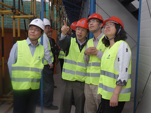 10月13日下午,中轻集团董事长陈鄂生、副总经理任建平等一行,来到位于上海闵行区浦江镇的“上海八六三软件孵化器有限公司新建企业研发、生产及辅助用房工程”和“上海明浦科技发展有限公司二期建设工程”在建项目工地进行安全检查。海诚股份董事长严晓俭、股份项目管理部人员,以及承接该项目的公司第三设计/工程部总经理周原、副总经理庞建国、施工监理部总经理杨威等接待了陈鄂生董事长一行,并陪同参加了安全检查。业主方的项目负责人也应邀参加了检查。