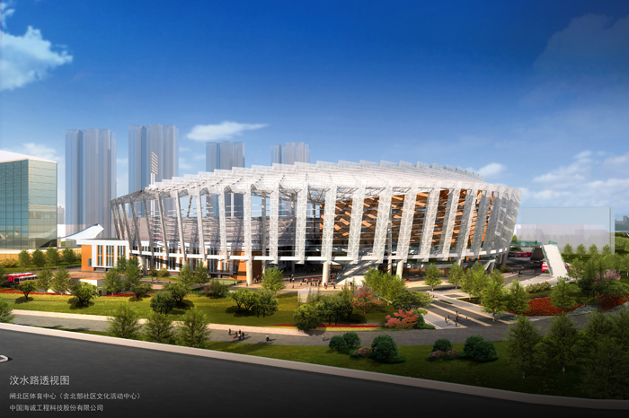 该体育场项目位于中环汶水路和南北高架交界处,占地面积92.7亩,建设面积71291㎡,是融合了综合体育馆(5600座)、足球场(750座),篮球馆、游泳池、网球馆、乒乓球馆等多个场馆,兼顾了赛事演艺、全民健身、配套和训练等功能的大型综合体育中心。整个场馆最为引人注目的就是在屋顶建造的16253㎡的体育场,这是全市首个室外屋顶标准体育场,位于离地13米的高空。