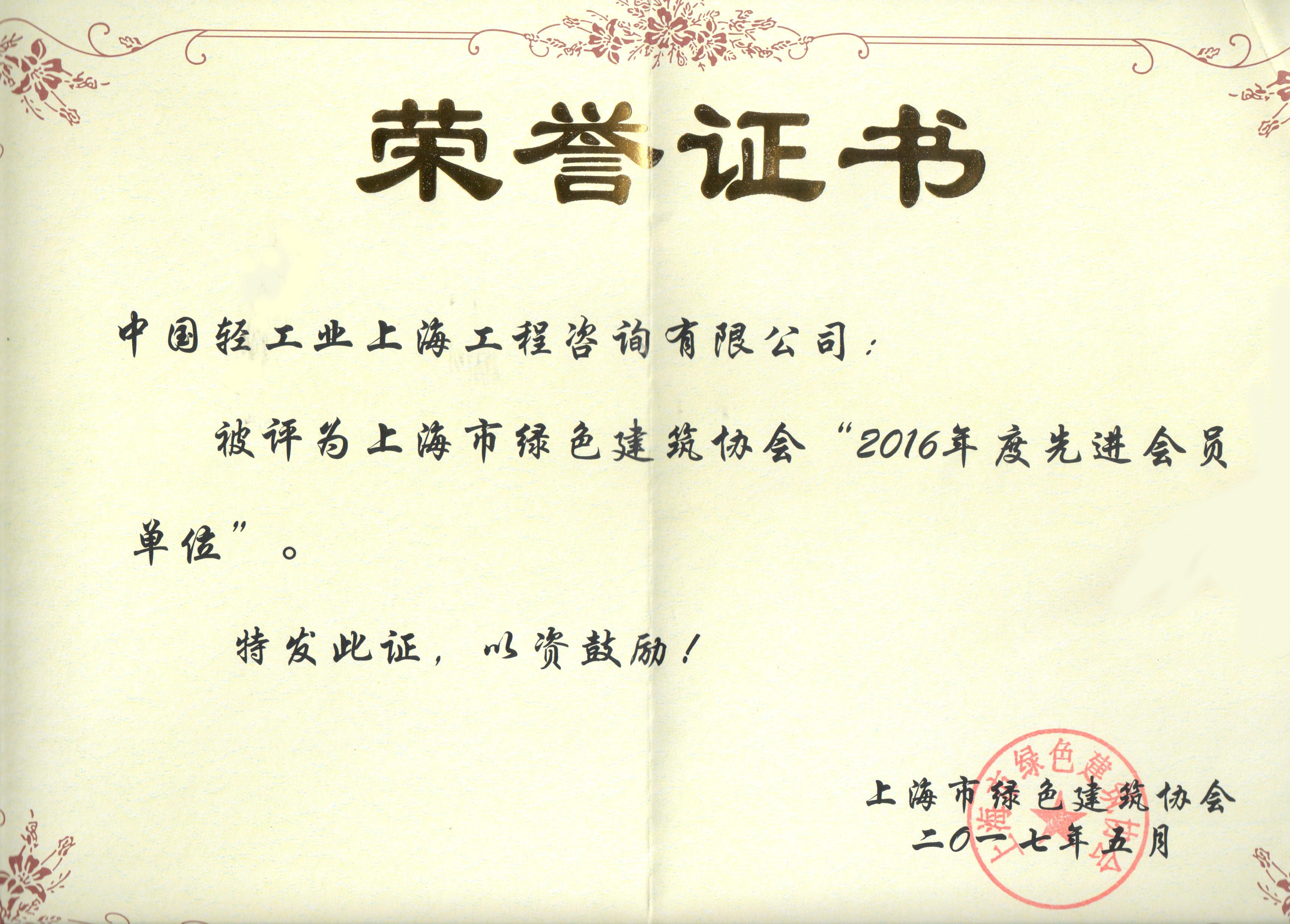 日前公司获邀出席上海市绿色建筑协会第四届第五次会员大会,并获评上海市绿色建筑协会2016年度先进会员单位。