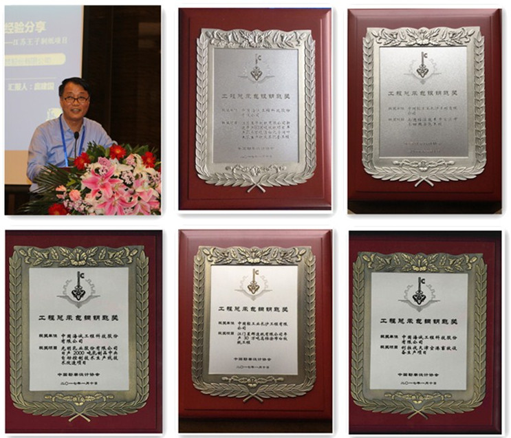 大会还对荣获第八届全国勘察设计行业优秀工程项目管理和优秀工程总承包项目的团队代表进行了颁奖。海诚股份共有5个项目获奖。其中:海诚股份承接的江苏王子制纸有限公司新建年产80万吨版纸项目 年产71.4万吨漂白化学阔叶木浆生产线及其配套工程、长沙子公司承接的南通经济技术开发区中水回用示范工程项目被授予工程总承包银钥匙奖;海诚股份承接的光明乳业股份有限公司日产2000吨乳制品中央自动控制技术生产线技术改造项目、利拉伐天津空港畜牧设备生产项目和长沙子公司承接的江门星辉造纸有限公司年产30万吨高档涂布白版纸工程被授予铜钥匙奖。王子项目项目经理庞建国、光明项目项目经理冯毅、天津利拉伐项目项目经理吕伟良、黄自力,南通中水回用工程和江门星辉项目项目经理胡正阳和吴鸣分别上台领奖。