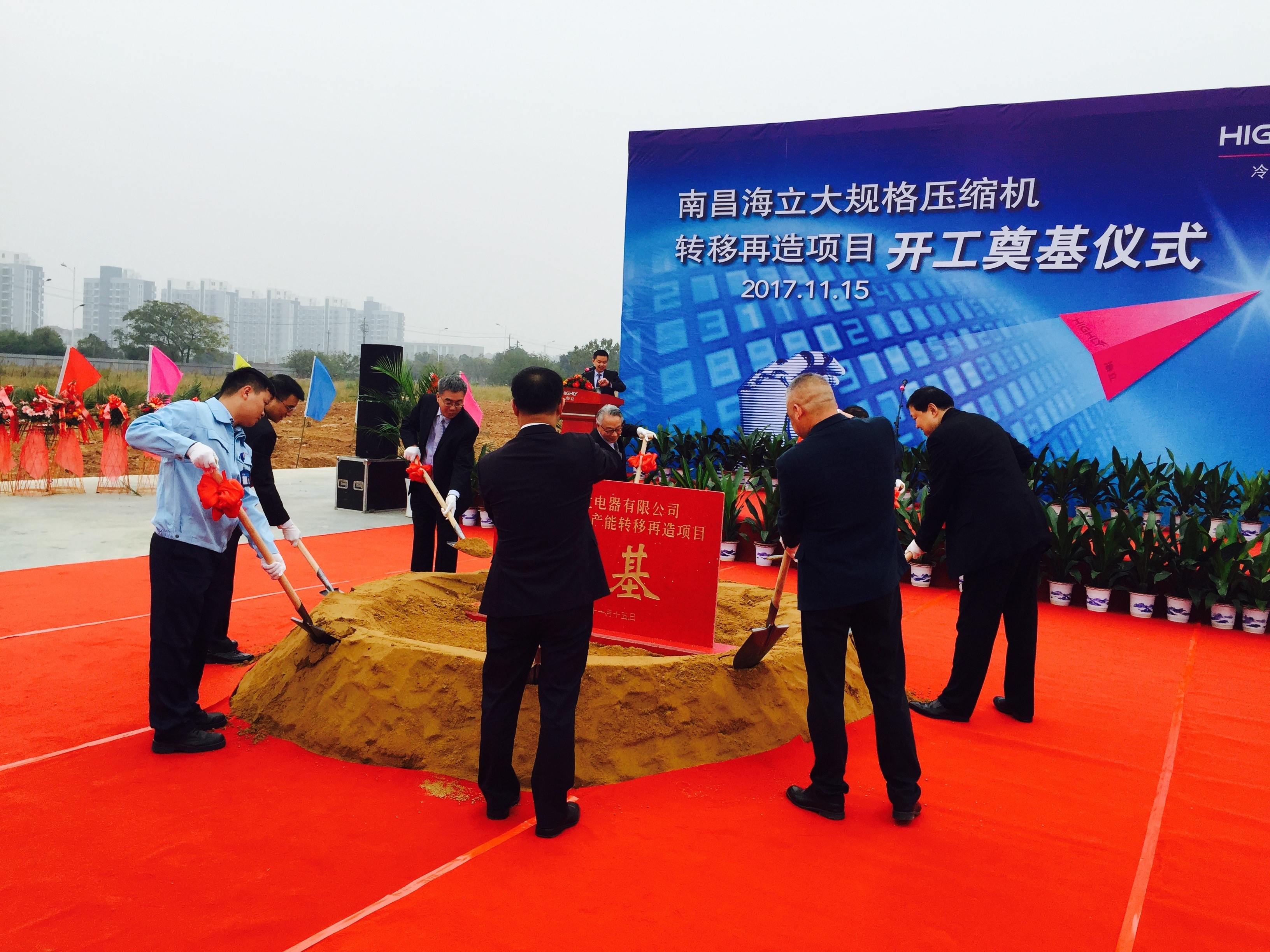 2017年11月15日,由公司总承包的“南昌海立电器有限公司大规格压缩机产能转移再造项目”正式奠基开工。海立集团董事长沈建芳出席了奠基仪式,公司副总裁戚永宜应邀参加。