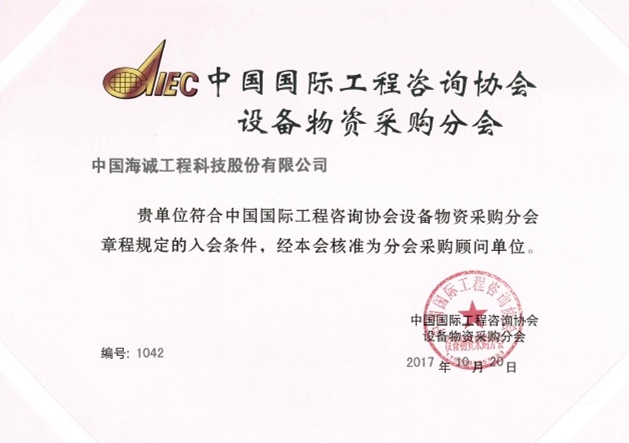 近日,中国国际工程咨询协会设备物资采购分会核准mansion88主页为“采购顾问单位”,并颁发了采购顾问证书。