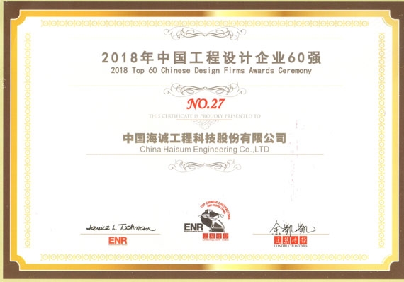 海诚股份位列“中国工程设计企业60强”第27位,这是自2004年举办该活动以来,公司连续第十五次获此殊荣。