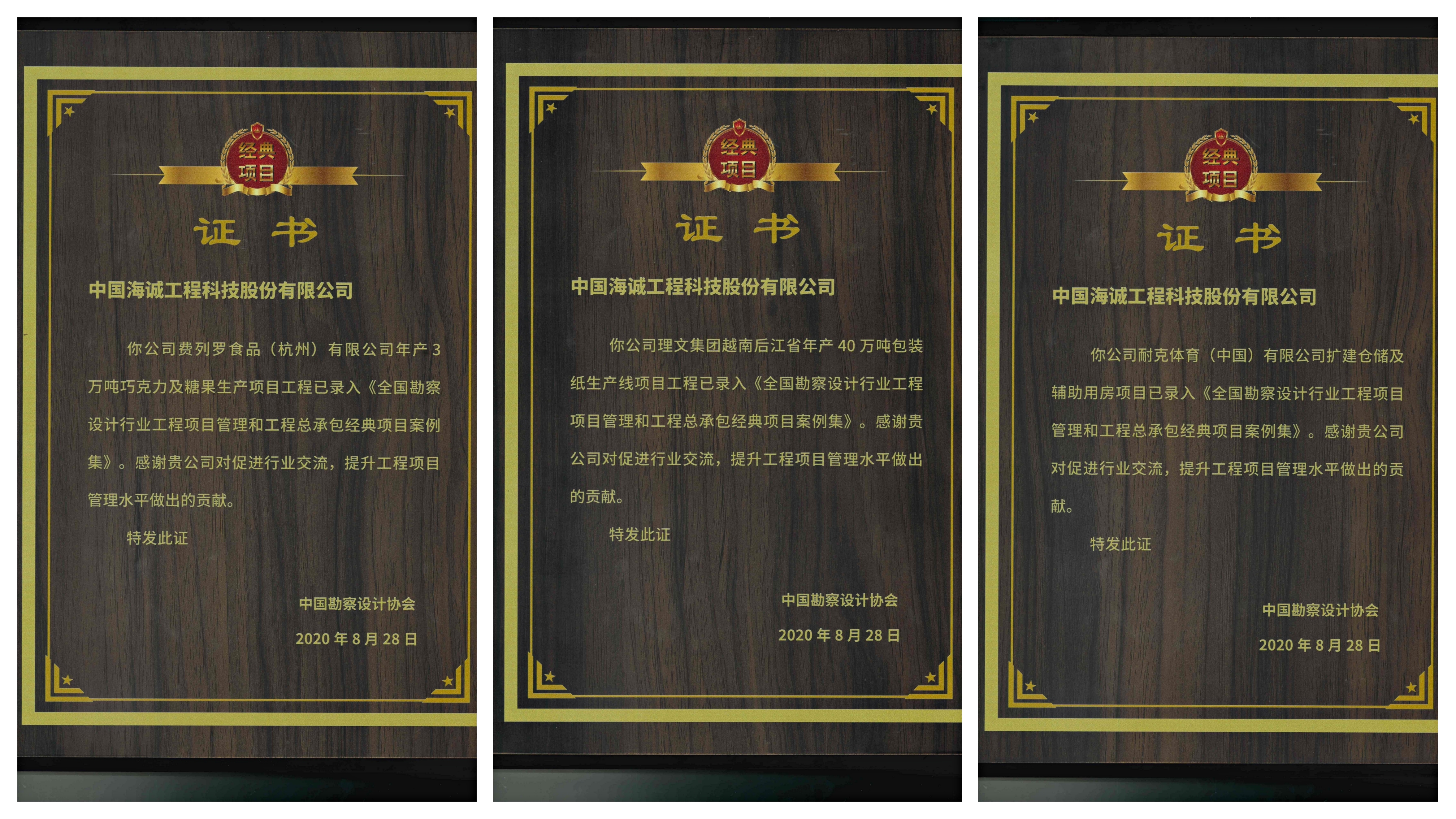 日前,第三届全国勘察设计行业工程项目管理大会暨中国勘察设计协会建设项目管理和工程总承包分会第四届会员大会和四届一次理事会在京召开。海诚股份党委书记、董事长赵国昂率队出席大会并当选总承包分会副会长。会议评选出全国勘察设计行业内28个工程总承包经典项目,我司承接的费列罗食品(杭州)有限公司年产3万吨巧克力及糖果生产项目、理文集团越南后江省年产40万吨包装纸生产线项目及耐克体育(中国)有限公司扩建仓储机辅助用房项目荣获经典项目荣誉称号,被录入《全国勘察设计行业工程项目管理和工程总承包经典项目案例集》。