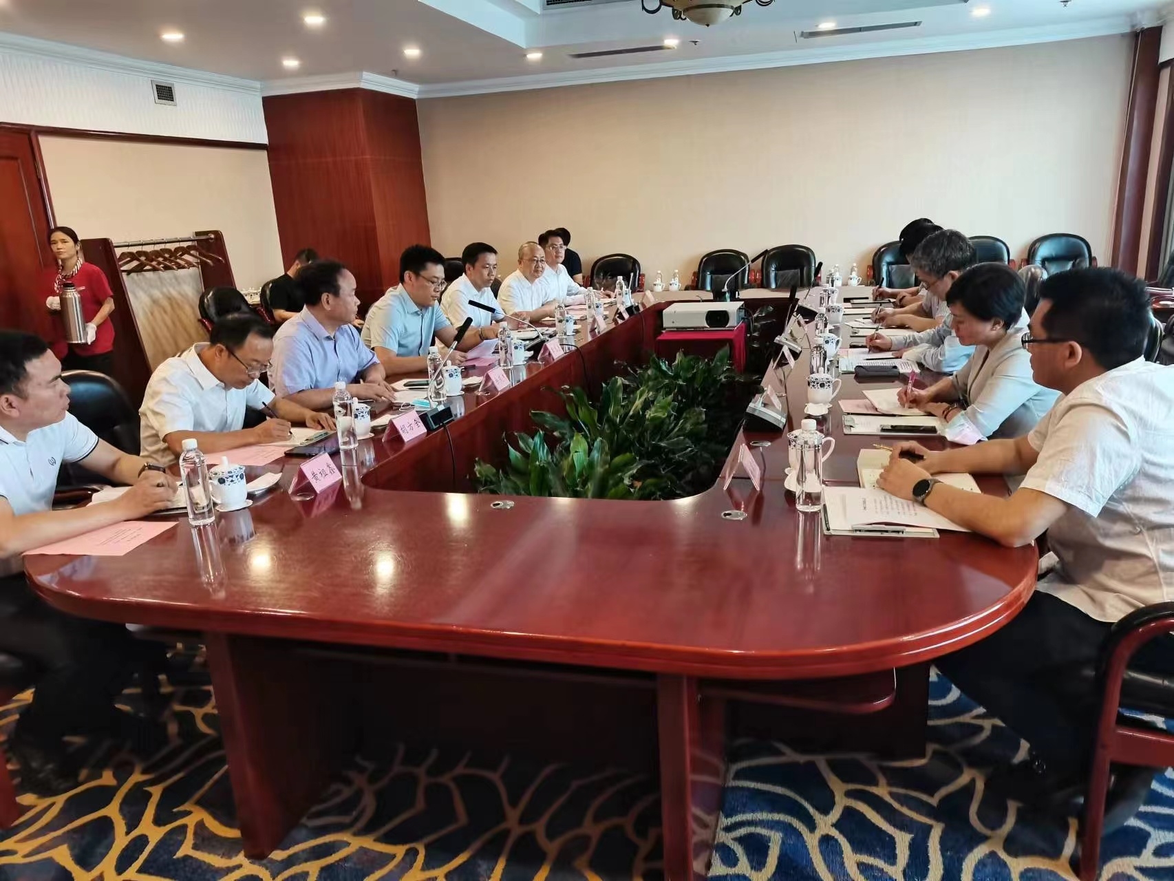 8月18日,赵国昂一行受到了泸州市市委常委、市政府副市长李志宇的热情接待。座谈会上,双方就泸州市经济社会情况和保利中轻相关情况进行了交流,并在白酒食品、制浆造纸、医疗医养、生物制药、智能制造等工程服务、投资合作领域交换了意见。李志宇强调,保利中轻的业务与泸州市发展方向高度契合,希望双方能常来常往、加强交流,持续推进合作、互利共赢,助力双方高质量发展。赵国昂表示,mansion88主页作为保利中轻所属上市公司,希望以本次拜访为契机,与泸州建立起常态化交流机制,为泸州市建设世界级优质白酒产业集群、重点培育电子信息、绿色建筑建材、制浆造纸等事宜贡献海诚力量。