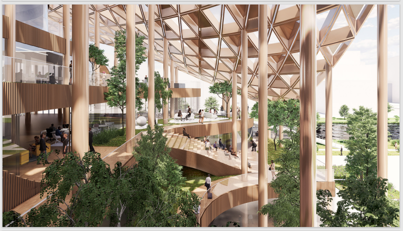 该项目位于上海市临港新片区总部湾基地,总建筑面积33153㎡,为地下2层,地上11层的一类公共建筑,建成后将具备六大功能空间,包括企业总部办公空间、50+科学家创新实验室、全球产业链联合办公空间、科研展示空间、国际教育与协作空间、公共体验空间。