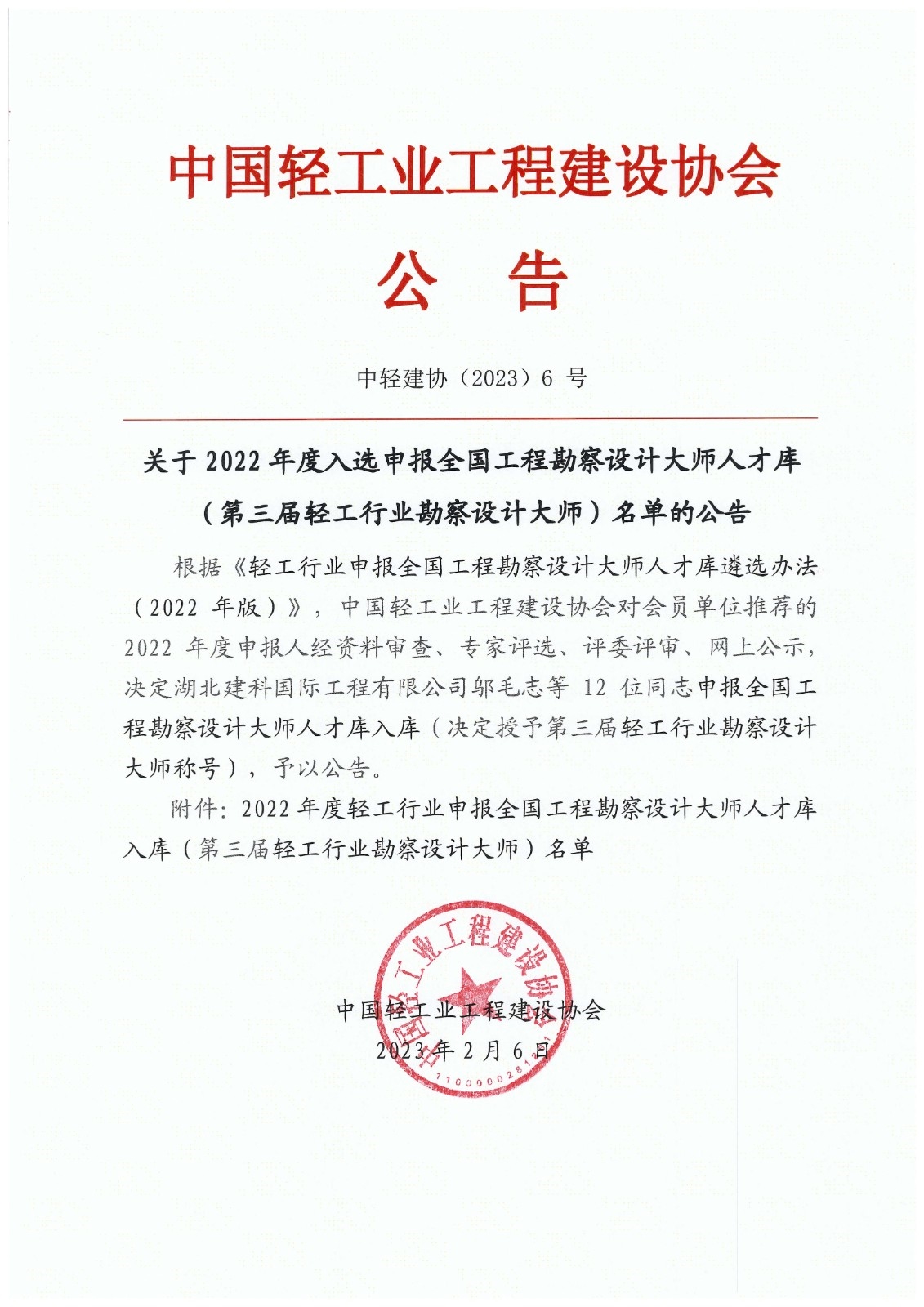 近日,中国轻工业工程建设协会发布“关于2022年度入选申报全国工程勘察设计大师人才库(第三届轻工行业勘察设计大师)名单的公告”, 12位全国轻工行业勘察设计大师名单中,mansion88主页及所属单位入选9位。