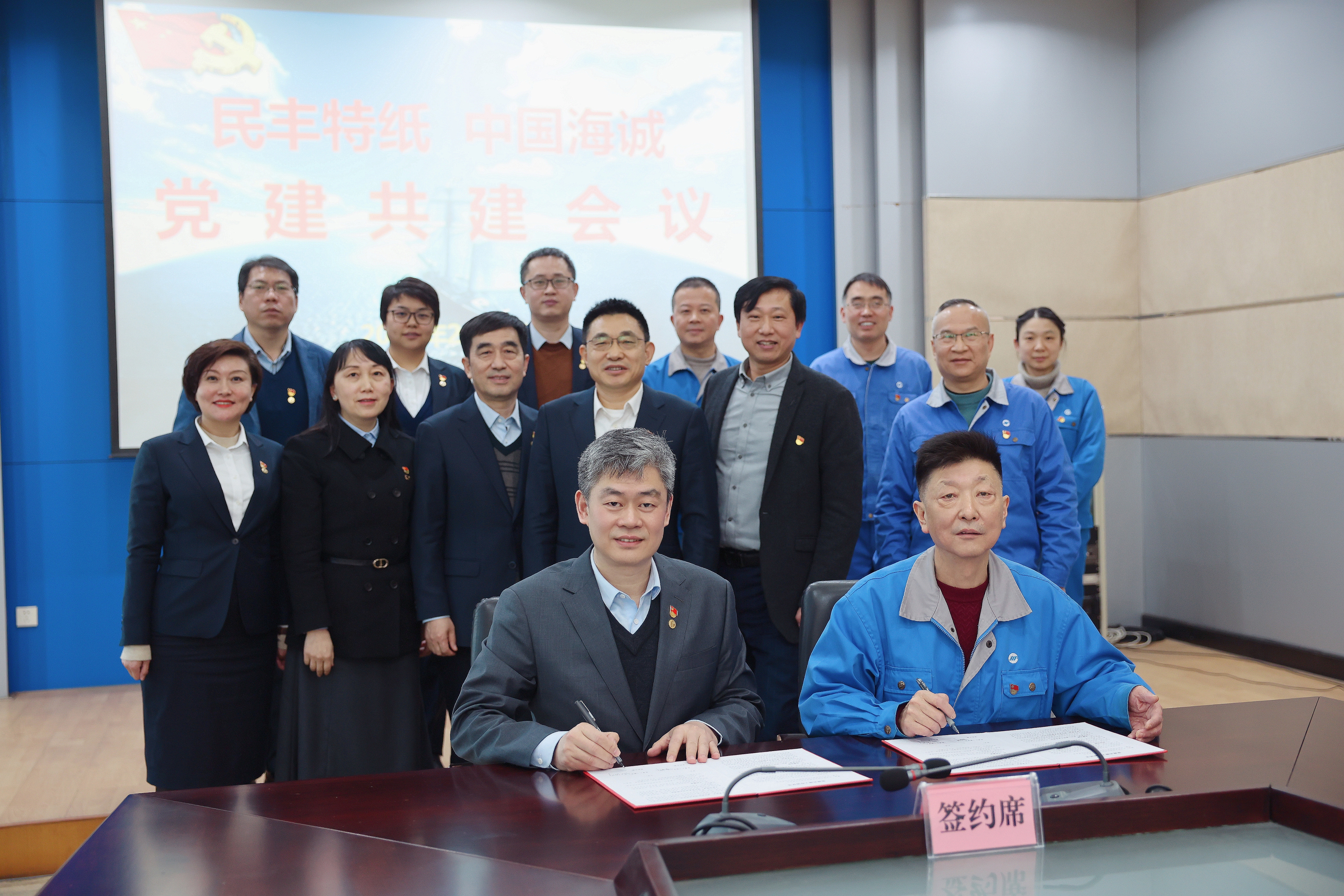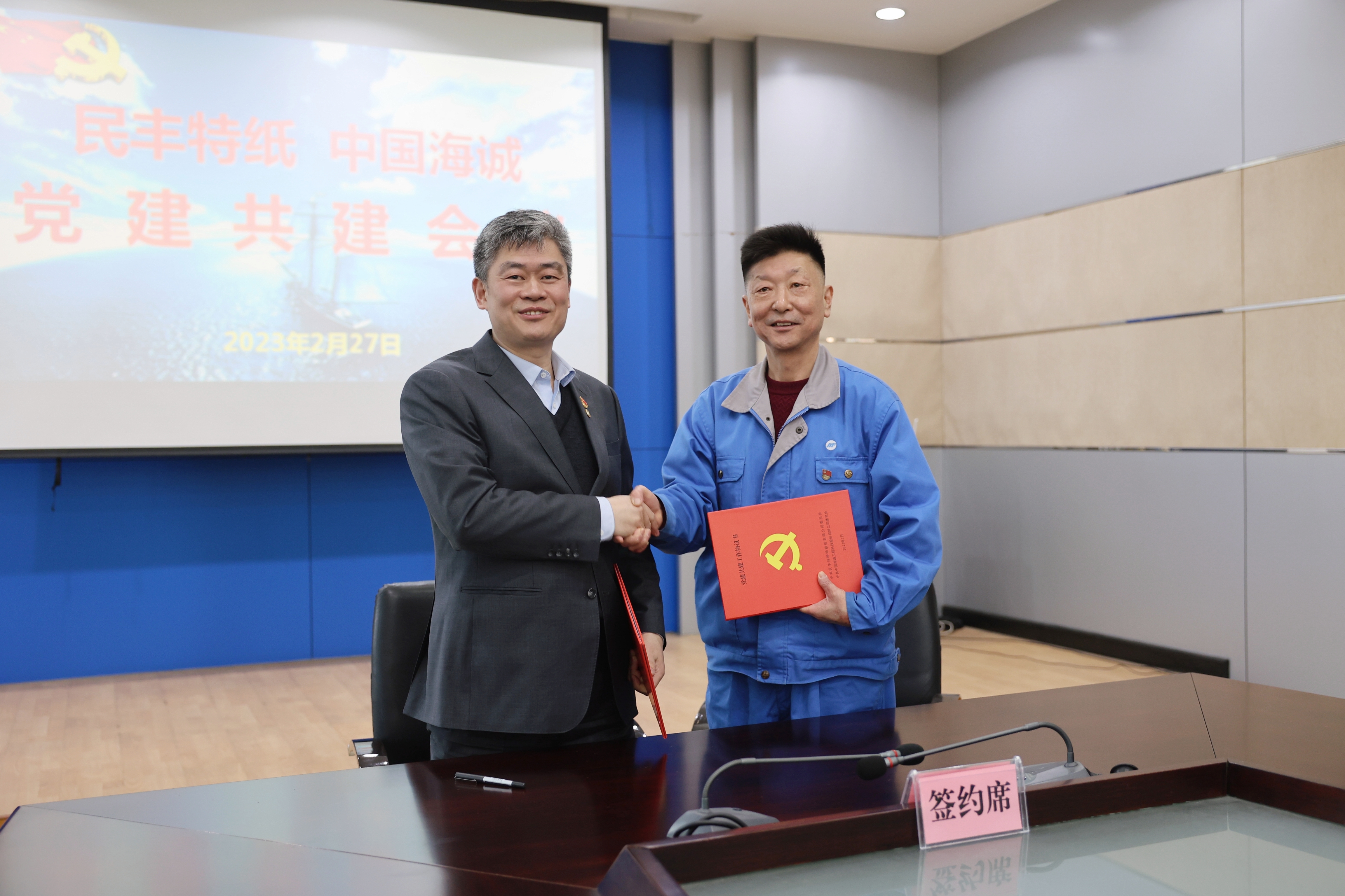 为深入贯彻党的二十大精神,落实新时代党的建设总要求,通过“党建引领、共建聚力”促进党建与业务深度融合,2023年2月27日,mansion88主页党委与民丰特纸党委签署党建共建协议。民丰特纸党委书记、董事长、总经理曹继华,党委副书记、副总经理陶伟强,党委委员、副总经理周家俊,党委委员、纪委书记王洪祥;保利中轻副总经理、mansion88主页党委书记、董事长赵国昂,党委副书记、总裁陈荣荣,党委副书记、纪委书记李义民出席签约仪式。