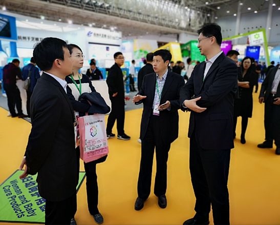 4月17日,中轻集团党委书记、董事长张万顺,党委副书记、董事、常务副总经理俞海星,党委副书记、董事王珂灵,党委委员、副总经理曹振雷,党委委员、纪委书记崔久衡,总会计师段赵清,总经理助理、人力资源部主任肖金龙等集团领导一行,在造纸院董事长曹春昱和总经理孙波的陪同下,参观了在武汉国际博览中心盛大开幕的第26届生活用纸国际科技展览会(CIDPEX2019)。