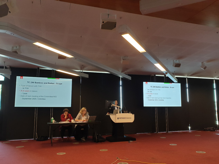 在SO/TC6全体会议上,造纸院黎的非作为 “竹和藤技术委员会(TC/296)”的联络员,汇报了近一年来TC/296的标准项目动态;造纸院吕卫军代表中国向各国专家发出邀请,欢迎大家参加2021年由中国主办造纸院承办的ISO/TC6全体年会。