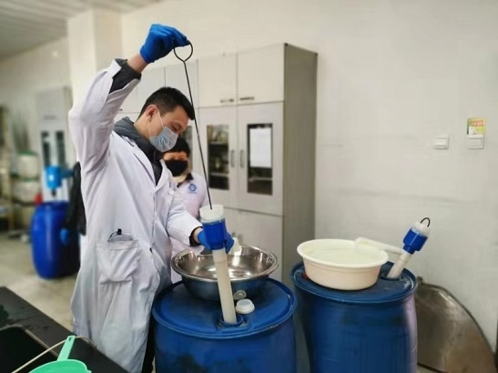 日化院表面活性剂重点实验室副主任台秀梅说:“接到联防联治通知后,课题组成员都一呼即应,加班加点,在实验室利用平时积累的配方配置出1200公斤消毒剂,通过1比100稀释,就可以兑出120吨的消毒液,为疫情防控做出我们自己的贡献。”