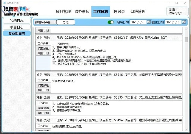 面对在建项目遇到的人员无法到岗、项目暂停等困难,为了有效确保人员安全和项目进度,海诚股份第三设计/工程部自主开发应用“项管家PM+”信息化系统,通过“云平台”实现数字办公、云上设计,为部门及项目管理人员实时追踪、掌控、调整工作节奏和进度提供强有力支撑,对居家办公人员业务建设、项目总结学习以及项目经营管理相关日志等工作情况进行实时把控,实现了对居家办公人员的全覆盖动态追踪,推动在执行的项目均按计划推进,真正做到疫情防控和企业发展两手抓、两不误、两促进。