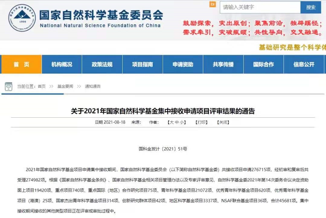 近日,国家自然科学基金委员会发布《关于2021年国家自然科学基金集中接收申请项目评审结果的通告》(国科金发计〔2021〕51号),保利中轻所属两家研究院获批2个国家自然科学基金项目。
