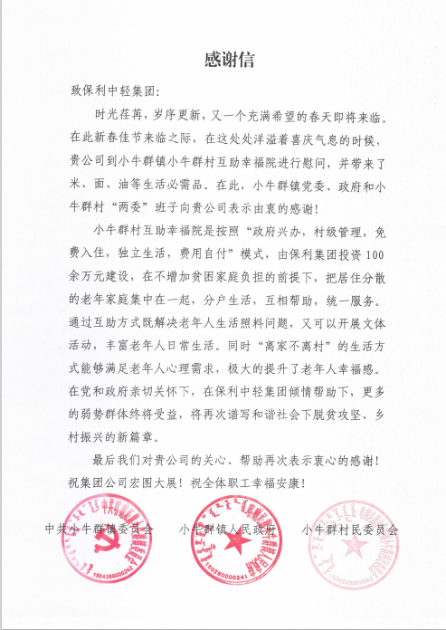 近日,为充分体现党和国家以及央企对定点帮扶地区的人文关怀,保利中轻在内蒙古喀喇沁旗开展“振兴喀喇沁·关心促和谐”春节慰问活动。