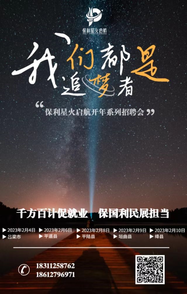 春风送真情,援助暖民心。为将更多境外优质岗位提供给山西省群众,助力当地群众就业增收,2023年2月,保利中轻所属中轻控股派遣的保利星火启航项目组参加了山西省人力资源和社会保障厅在山西各地陆续举办的“惠民生 促就业”—春风行动暨就业援助月系列招聘活动,分别赴山西省晋中市平遥县、吕梁市离石区、兴县、运城市平陆县、垣曲县等地现场招聘。