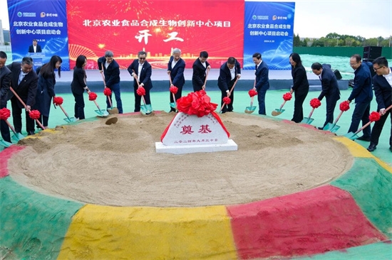 中国食品发酵工业研究院党委书记、总经理郭新光代表建设运营单位发言,项目管理单位和施工单位分别作表态发言。平谷区委书记唐海龙宣布项目开工,集团领导与市区两级领导嘉宾共同为北京农业食品合成生物创新中心奠基。