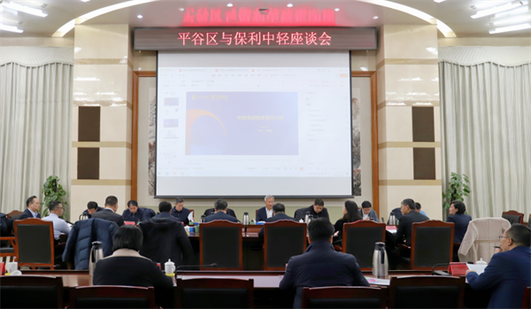 唐海龙对平谷区的发展规划与愿景进行了全面阐述,感谢保利中轻一直以来的支持和帮助,期待彼此开展更为全面深入的合作。他指出,平谷区自身资源与区位优势明显,保利中轻拥有轻工行业贯通科研等完整产业链综合集成服务能力,希望双方强强联手,锚定高端产业,全面谋划产业升级发展。在农业食品科技成果转化、物流产业升级扩容、智能制造产业培育等关键领域深度合作、协同发力,实现互利共赢,为平谷区经济社会发展注入强大动力。