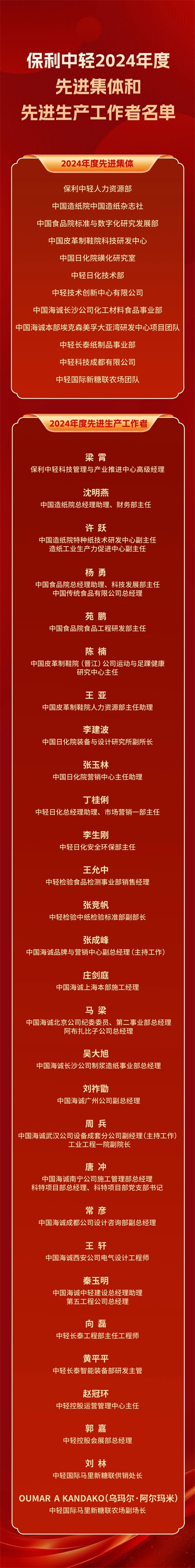 会议还表彰了保利中轻2024年度先进集体和先进生产工作者,2024年度“致远计划”优秀课题成果。