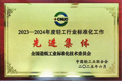 中国制浆造纸研究院承担秘书处单位的全国造纸工业标准化技术委员会获得“2023—2024年度轻工行业标准化工作先进集体”荣誉称号。