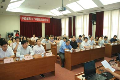 2009年9月2日,中国轻工集团公司召开了ERP总结验收会。中轻集团ERP项目自2006年1月启动以来,经过中轻集团和用友软件公司双方的共同努力、密切协作,圆满完成了中轻集团ERP项目的实施工作。集团公司副总经理曹振雷主持会议。集团公司董事、ERP项目组副组长王汉全代表项目组作项目总结讲话,王汉全同志在讲话中对中轻集团信息化建设历程进行了简要回顾,并对ERP系统的开发实施的有关情况和截至目前的实施效果进行了介绍。在会上,ERP项目组分别对NC系统、IUFO报表、BI绩效管理进行了成果展示。