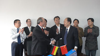 经过数轮紧张谈判,2009年11月18日,集团公司所属长沙长泰公司与德国徕斯机器人公司就工业机器人领域进行业务合作签定了合资合同。集团公司副总经理、长泰公司董事长马思一先生与德国徕斯机器人公司代表、亚太区总裁Manfred Emont先生代表双方分别在合资合同书上签字。