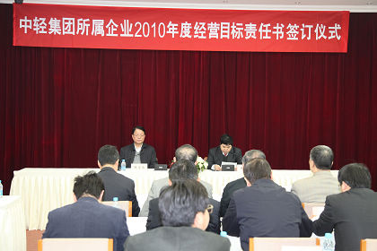 中国轻工集团公司所属企业2010年度经营目标责任书签订仪式于3月30日在集团总部举行,集团公司领导、集团公司部门负责人、二级企业主要负责人出席了仪式。
