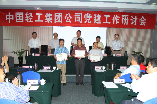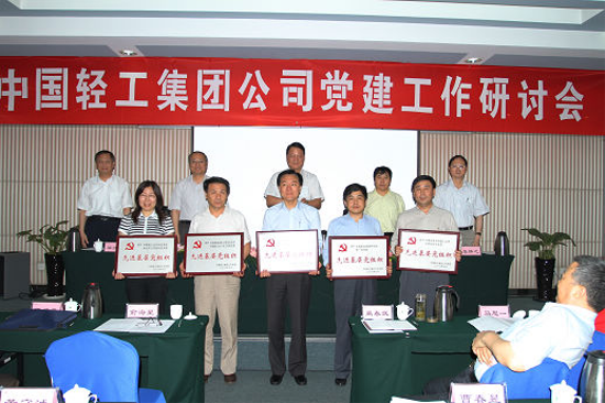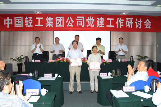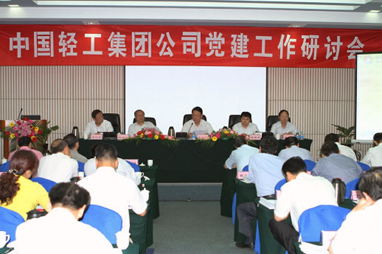 5月27--28日,中国轻工集团公司召开了党建工作研讨会,会议深入贯彻落实党的十七大、十七届四中全会和全国国有企业党建工作会议精神,深入贯彻落实科学发展观,总结集团公司重组以来党建工作情况,研究探讨加强和改进集团公司党建工作的意见和措施,安排部署当前和今后一个时期党建工作,表彰集团公司先进基层党组织、优秀共产党员和优秀党务工作者。集团公司党委书记、董事长陈学忠、总经理陈鄂生、党委副书记赵海建、副董事长张静之、党委副书记、纪委书记梁江东出席会议并在主席台就座,集团公司在家的党政领导班子成员禹春武、俞海星、马思一、任建平、阎宝成、郭建全、童云翔,集团公司各所属企业党政负责同志及党办主任共计50余人出席了会议。