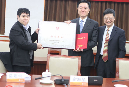 2月25日下午,集团公司董事长、党委书记陈鄂生,集团公司总经理俞海星向海诚股份公司总裁严晓俭颁了奖。