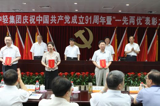 2012年6月29日下午,中轻集团庆祝中国共产党成立91周年暨“一先两优”表彰大会在集团公司新的总部办公大楼——中轻大厦隆重召开。会议隆重表彰了集团公司先进基层党组织、优秀共产党员、优秀党务工作者和集团公司2009-2011年度创建“四好”领导班子先进集体。集团公司党委书记、董事长陈鄂生在会上作了重要讲话。集团公司总经理俞海星主持会议。