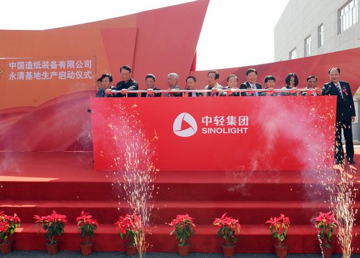 2012年10月23日,中国造纸装备有限公司在其河北永清基地隆重举行了以“自主创新 成就未来”为主题的“永清基地生产启动仪式暨技术研讨会”,向业界宣告了作为中国高端造纸装备技术引领者正式亮相。国务院国资委监事会主席寻寰中、中国轻工业联合会副会长钱桂敬、廊坊市常务副市长蒋洪江、国家工信部规划司副司长兼廊坊市副市长顾强、国家发改委产业协调司轻纺处处长曲美玉、中国工程院院士兼华南理工大学教授陈克复、中国造纸学会理事长陈学忠等出席了启动仪式。集团公司董事长陈鄂生、总经理俞海星、副总经理马思一、曹振雷出席了启动仪式。