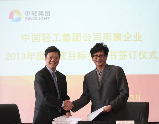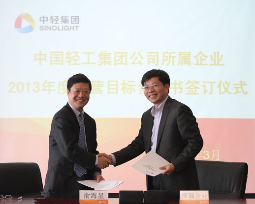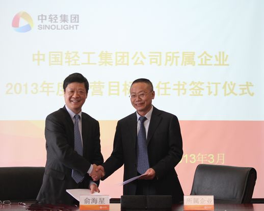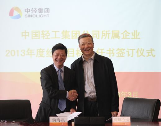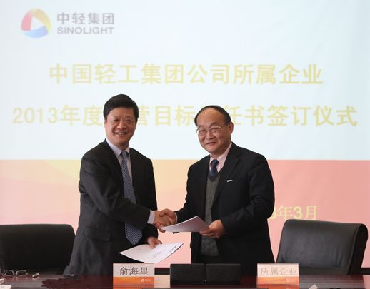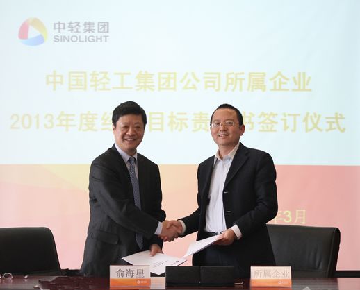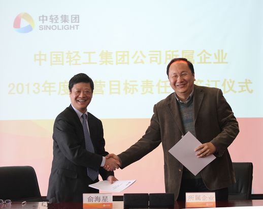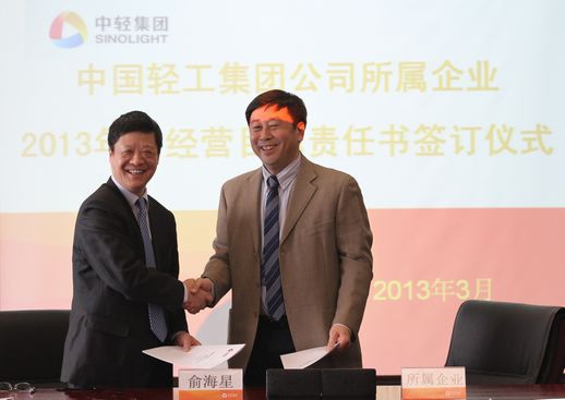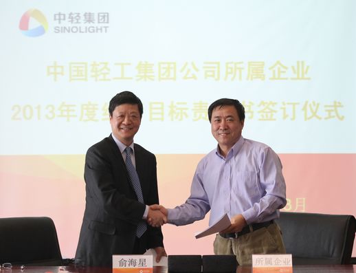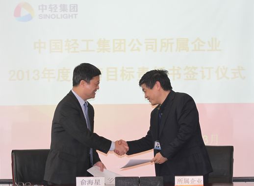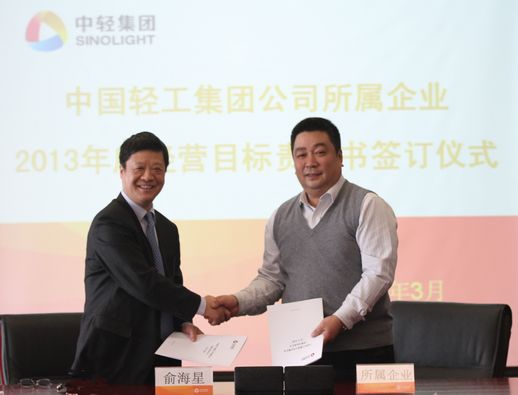 俞海星总经理与中轻对外公司总经理王向阳签订目标责任书