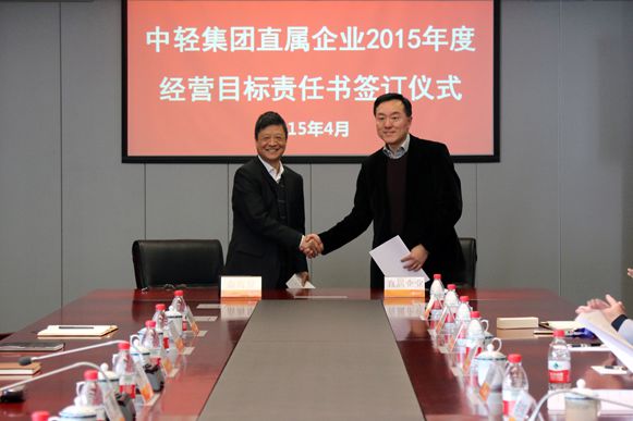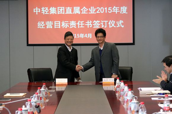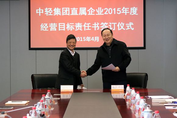 集团公司总经理俞海星与直属企业(中轻对外公司总经理王向阳)签订责任书