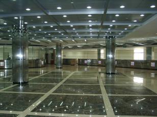40厚刚性防水层及防滑地砖上人屋面;裙房屋面为屋顶花园,并带有草皮、假山。我公司负责该项目的土建施工、公用设备安装及装修监理。